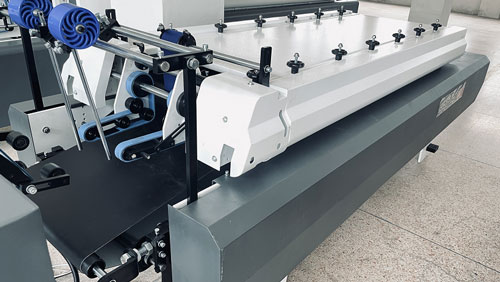 同步帶送紙皮帶配合氣缸壓力進紙確保調機簡便,送紙平穩(wěn)順暢 無級變速器確保進料間距均衡,輸送穩(wěn)定 一健式氣動抬刀便于調整送紙皮帶 |